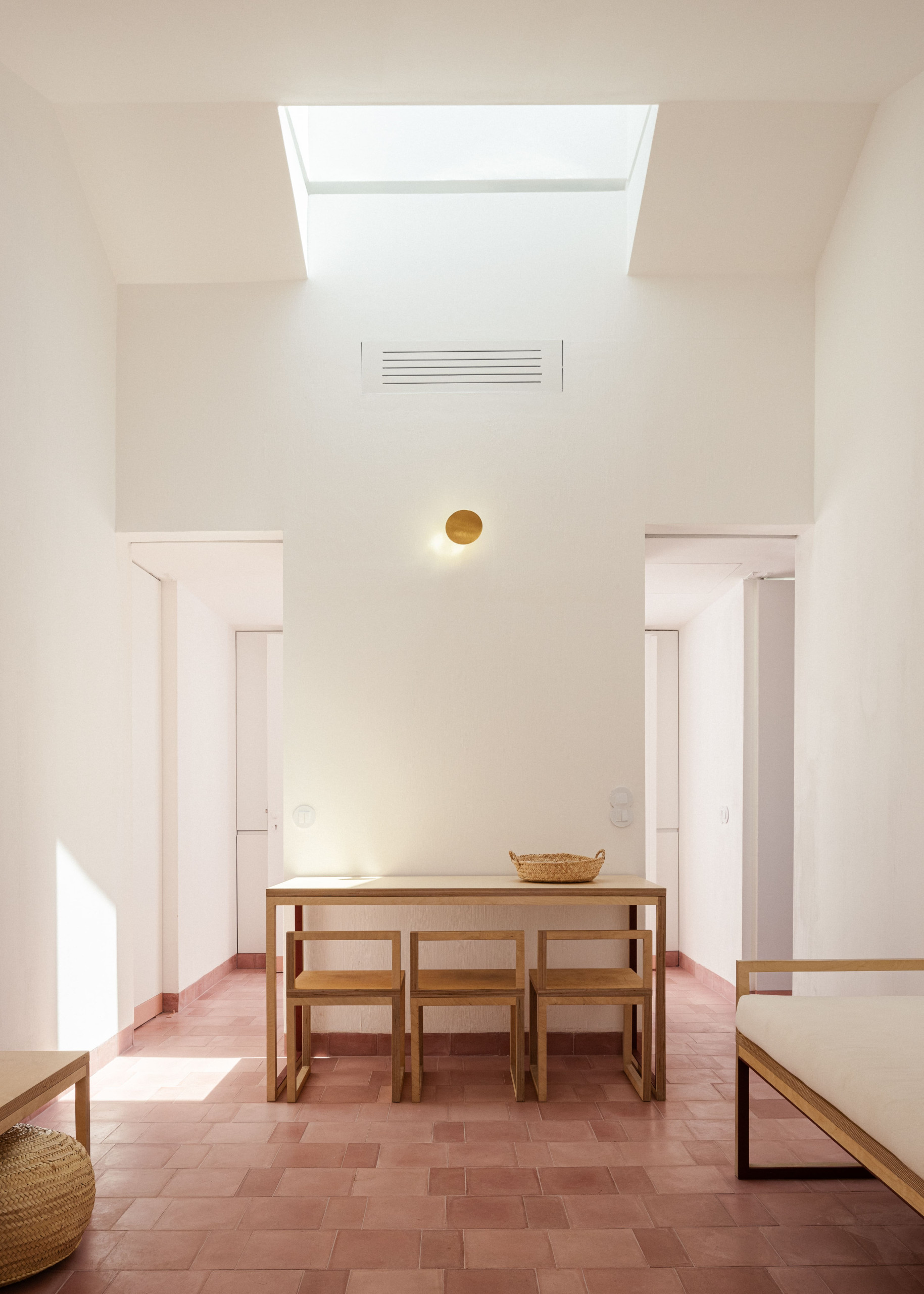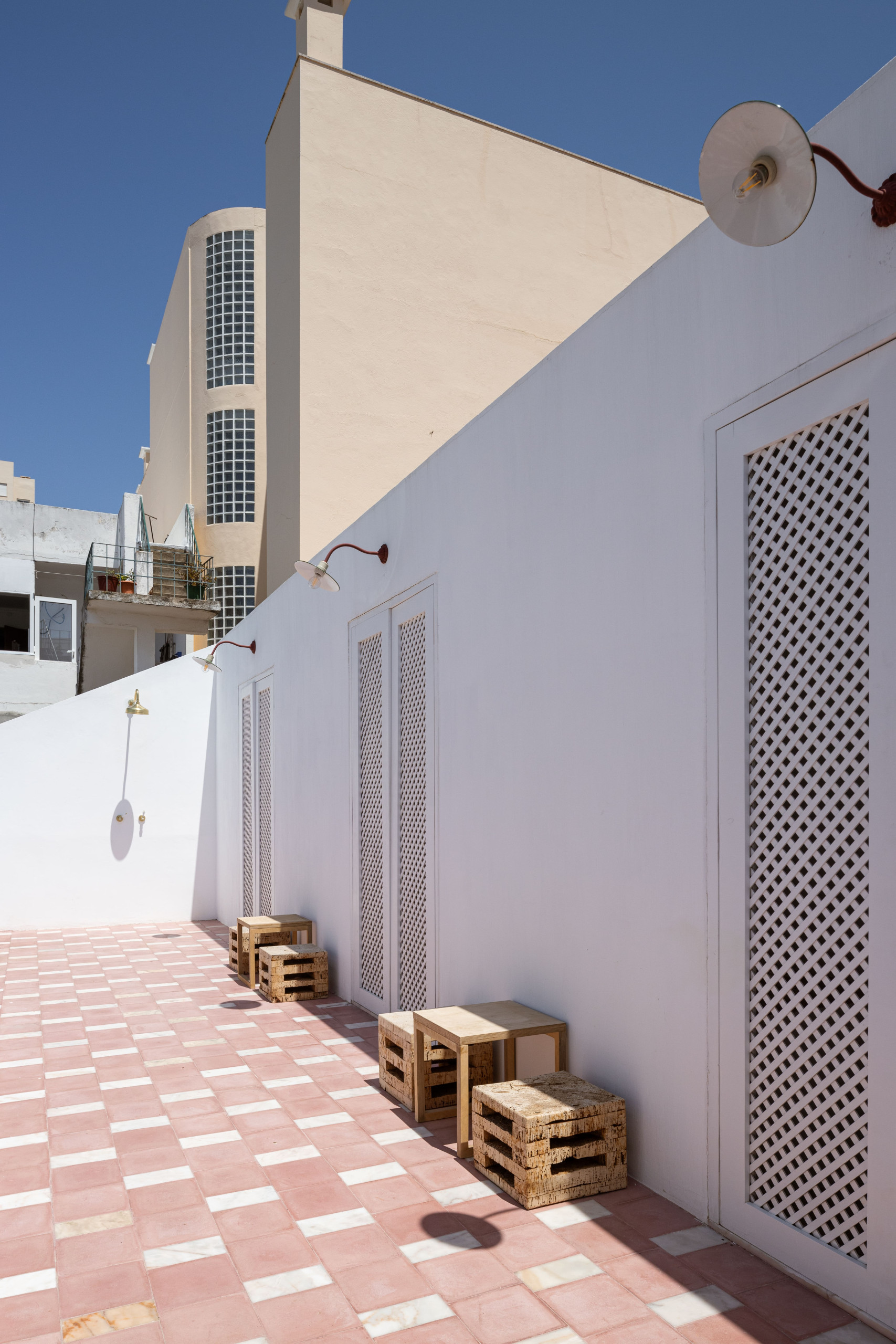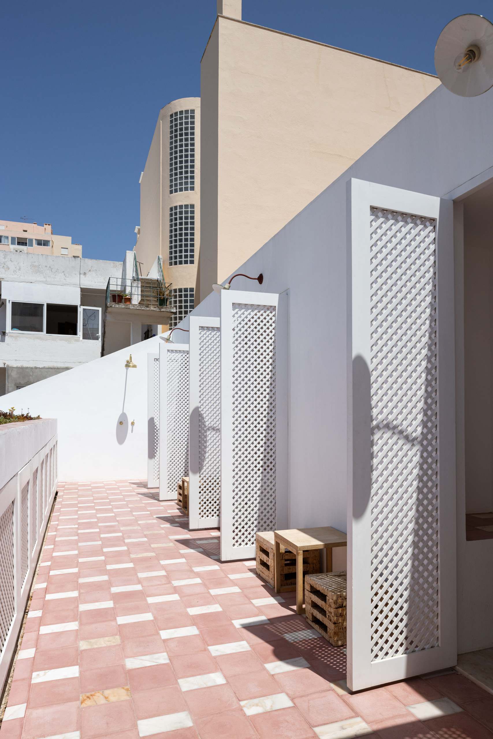 Localizado no primeiro andar (acesso apenas por escadas), este T2 apresenta dois quartos com um design elegante e funcional, onde o branco e os tons de terracota criam um ambiente sereno. Cada quarto dispõe de uma casa de banho privativa, cuidadosamente separada por uma parede recuada, garantindo privacidade e conforto. A iluminação natural, os acabamentos em latão e os materiais nobres reforçam o cuidado estético de todo o espaço. A cozinha, oculta por painéis de madeira e equipada com o essencial, liga-se a uma zona de estar simples e prática, valorizada pela luminosidade natural do espaço. O apartamento dispõe ainda de televisão com canais internacionais, internet de alta velocidade e acesso a uma piscina — um verdadeiro luxo no coração da cidade.