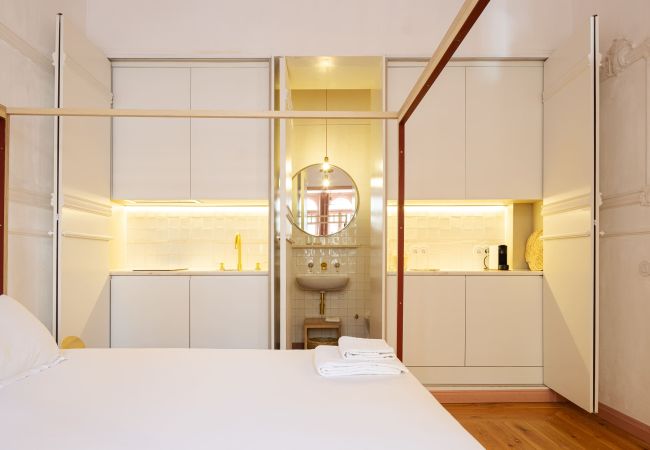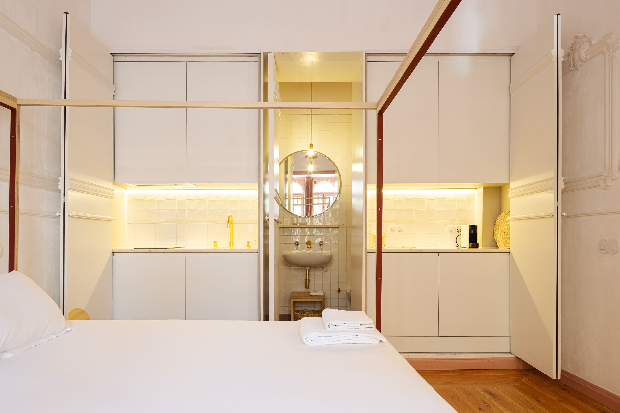 Inserted in a rare example of Art Nouveau from 1923, this space combines the elegance of historical architecture with the functionality of today. Ideal for those seeking a distinctive stay, in an inspiring and minimalist environment, with the essentials for an authentic experience.